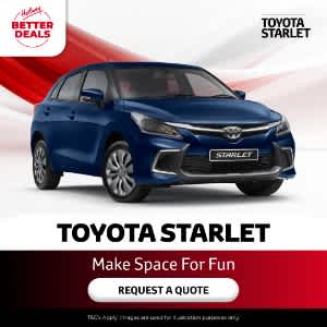 - Economical to Run: Go further for less with the Starlet's impressive fuel efficiency, saving you money on every drive.